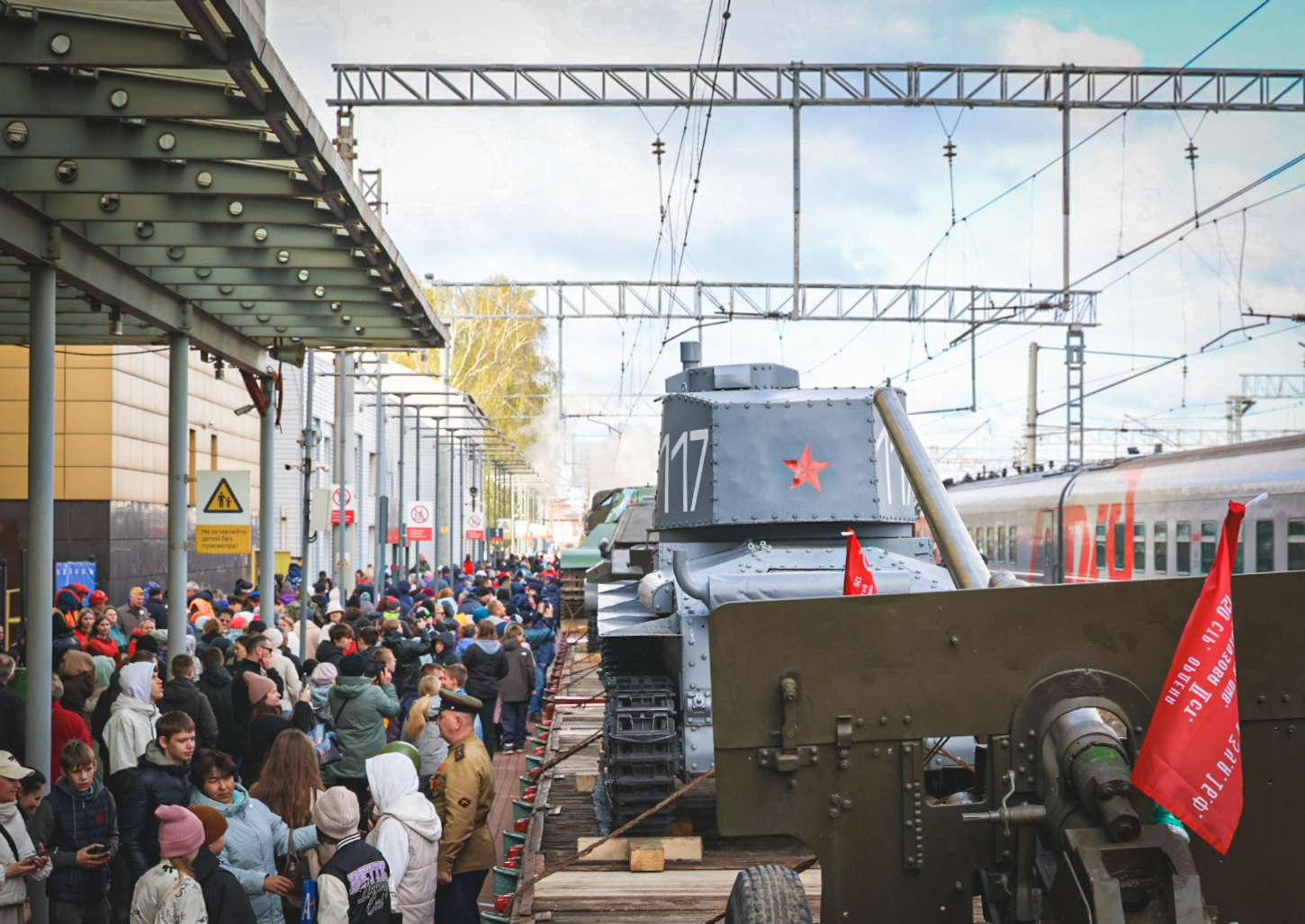 Исторический состав с техникой времен войны встретили около 10 тысяч человек на вокзале Уфы