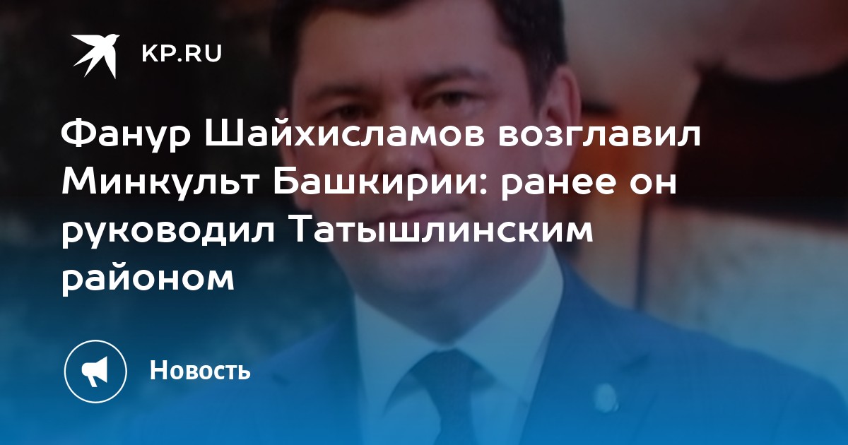 Минкульт Башкирии возглавит Фанур Шайхисламов-глава Татышлинского района