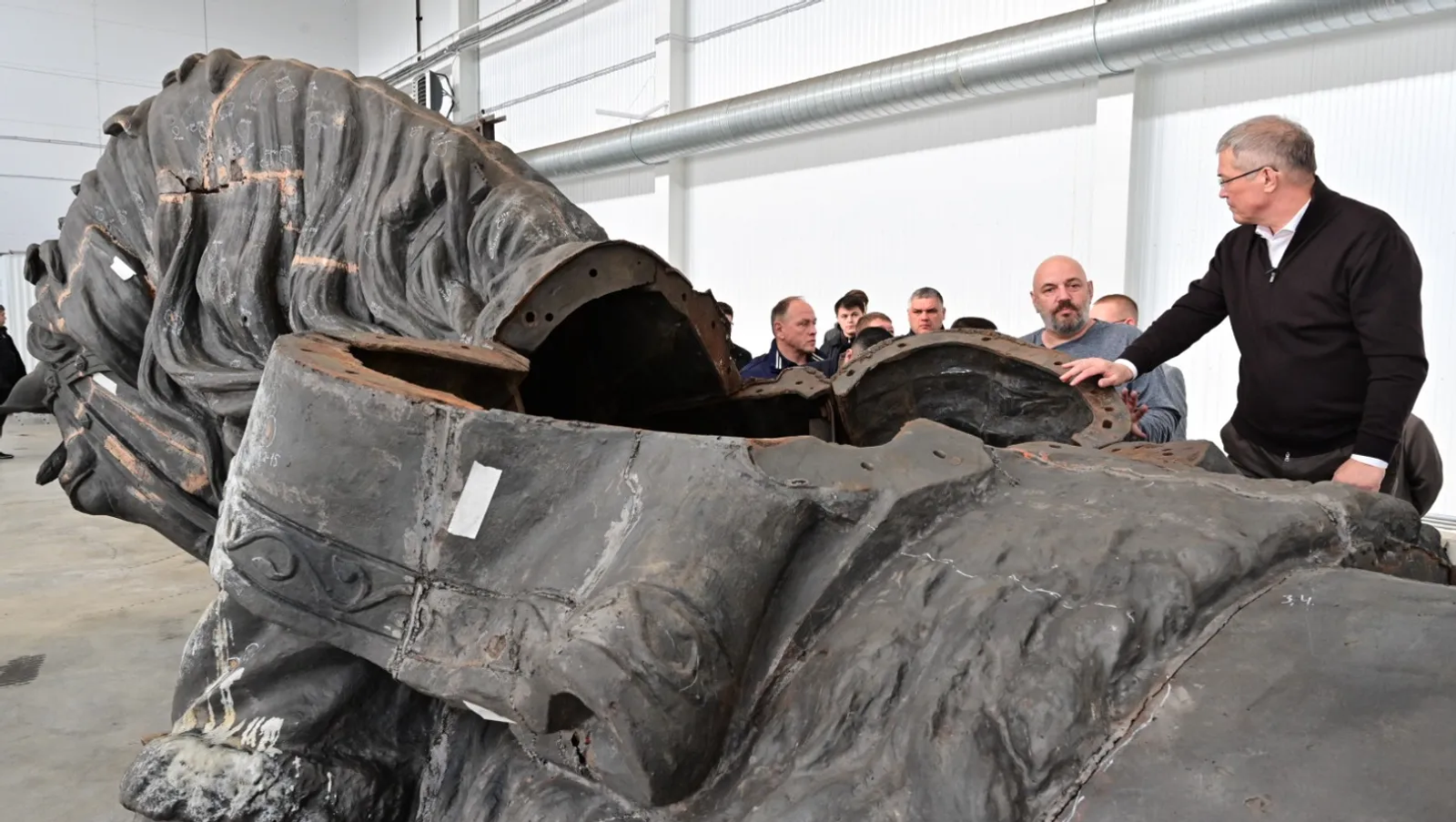 Радий Хабиров: Нахожусь в мастерской, где реставрируют памятник Салавату Юлаеву.
