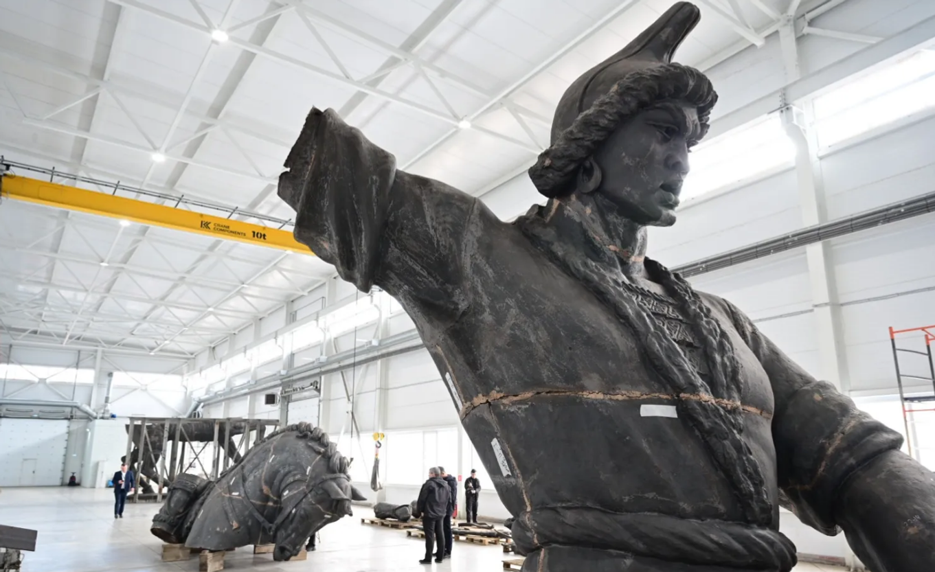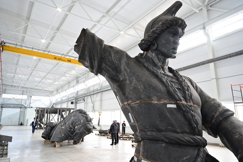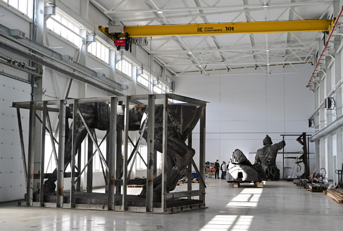 Нахожусь в мастерской, где реставрируют памятник Салавату Юлаеву.