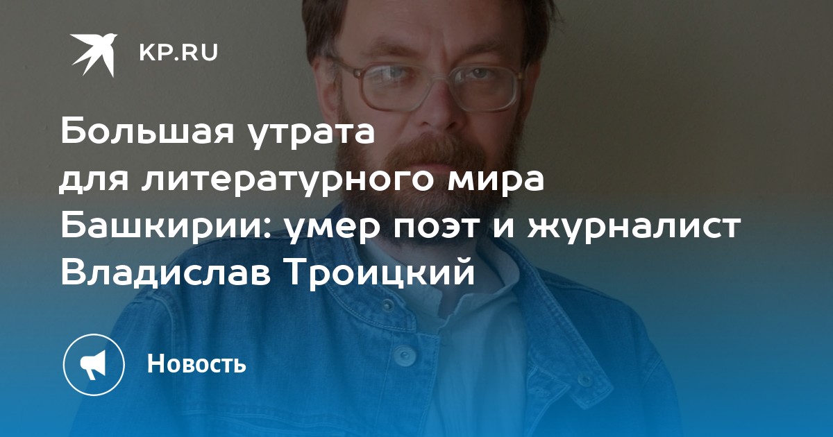 В Уфе на 65-м году жизни скончался известный поэт и журналист Владислав Троицкий. Его тело было обнаружено в поезде, когда он возвращался из Чувашии. Коллеги вспоминают его как талантливого автора и активного участника литературного процесса, оставившего после себя значительное наследие в виде стихотворений и публикаций.