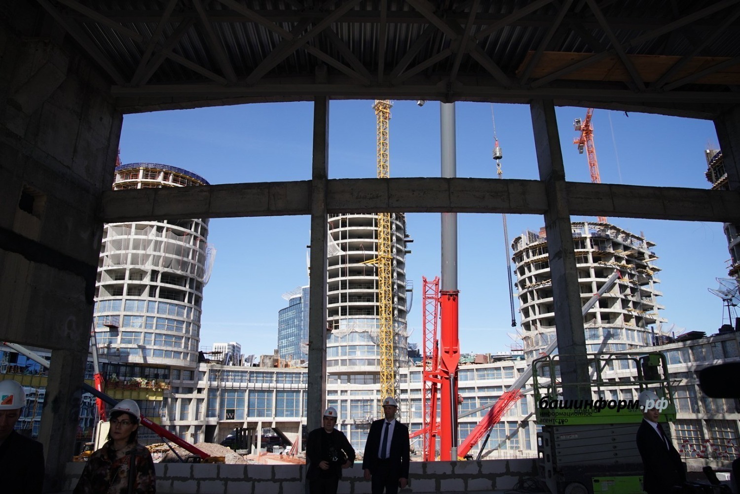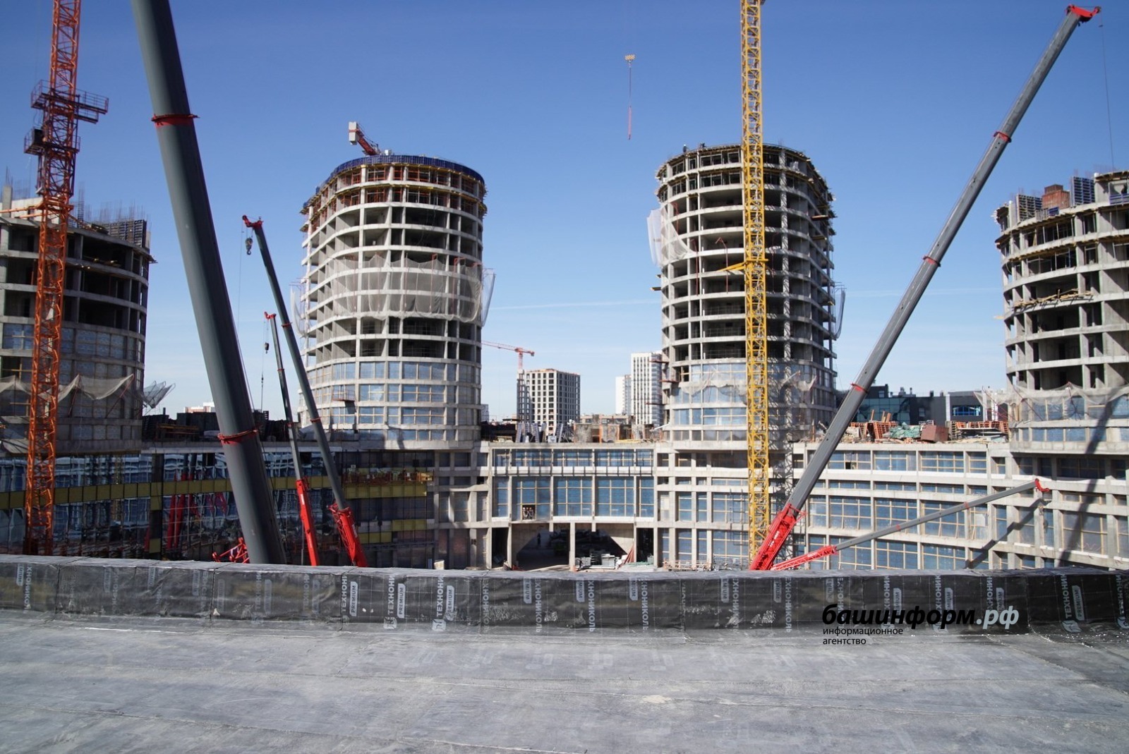 Радий Хабиров сегодня ознакомился с ходом строительства Межвузовского студенческого кампуса. На данный момент рабочие возводят башни, проводят отделочные работы и коммуникации.