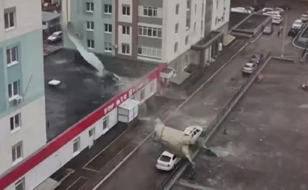 В Уфе бушует ураган: облицовка летит на машины, заборы падают на парковки видео