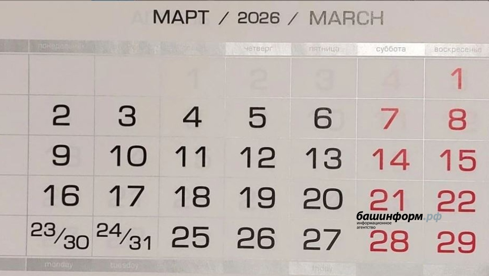 В марте жителей Башкирии ждут сразу две короткие рабочие недели