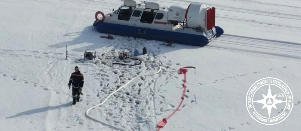 В Башкирии пожарные добрались к горящему дому на судне с воздушной подушкой