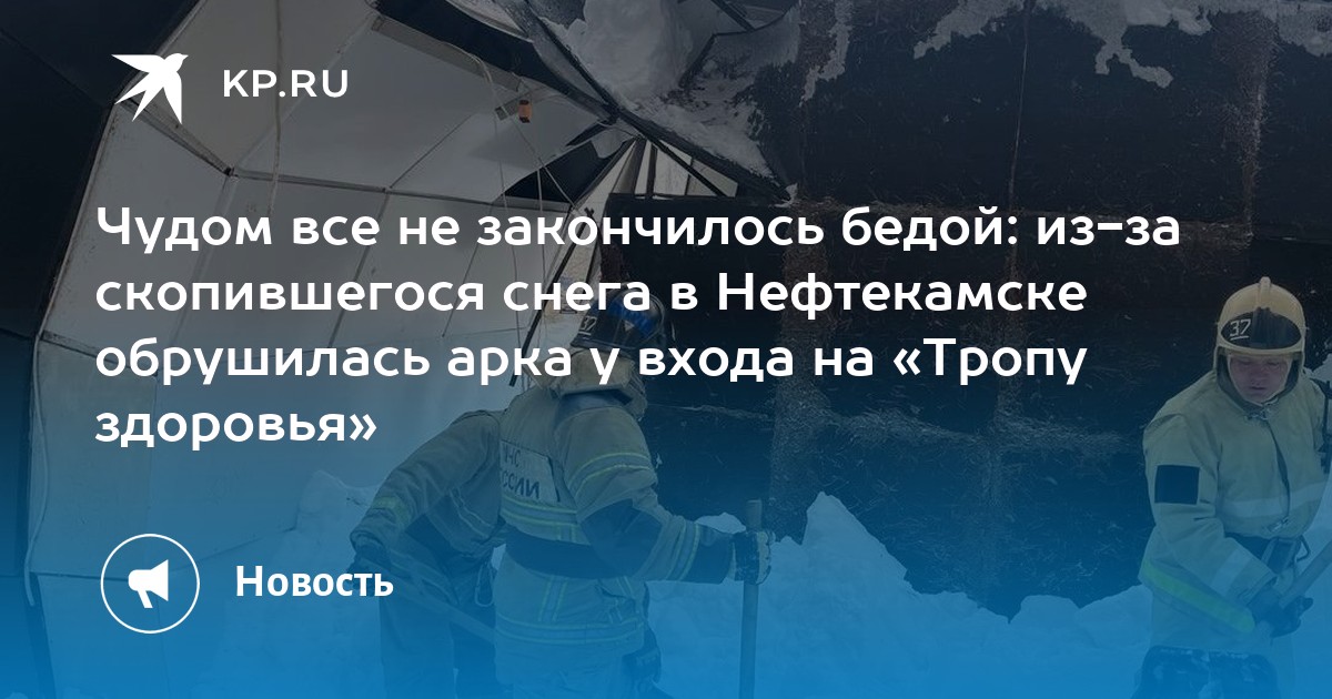 Чудом все не закончилось бедой: из-за скопившегося снега в Нефтекамске обрушилась арка у входа на Тропу здоровья
