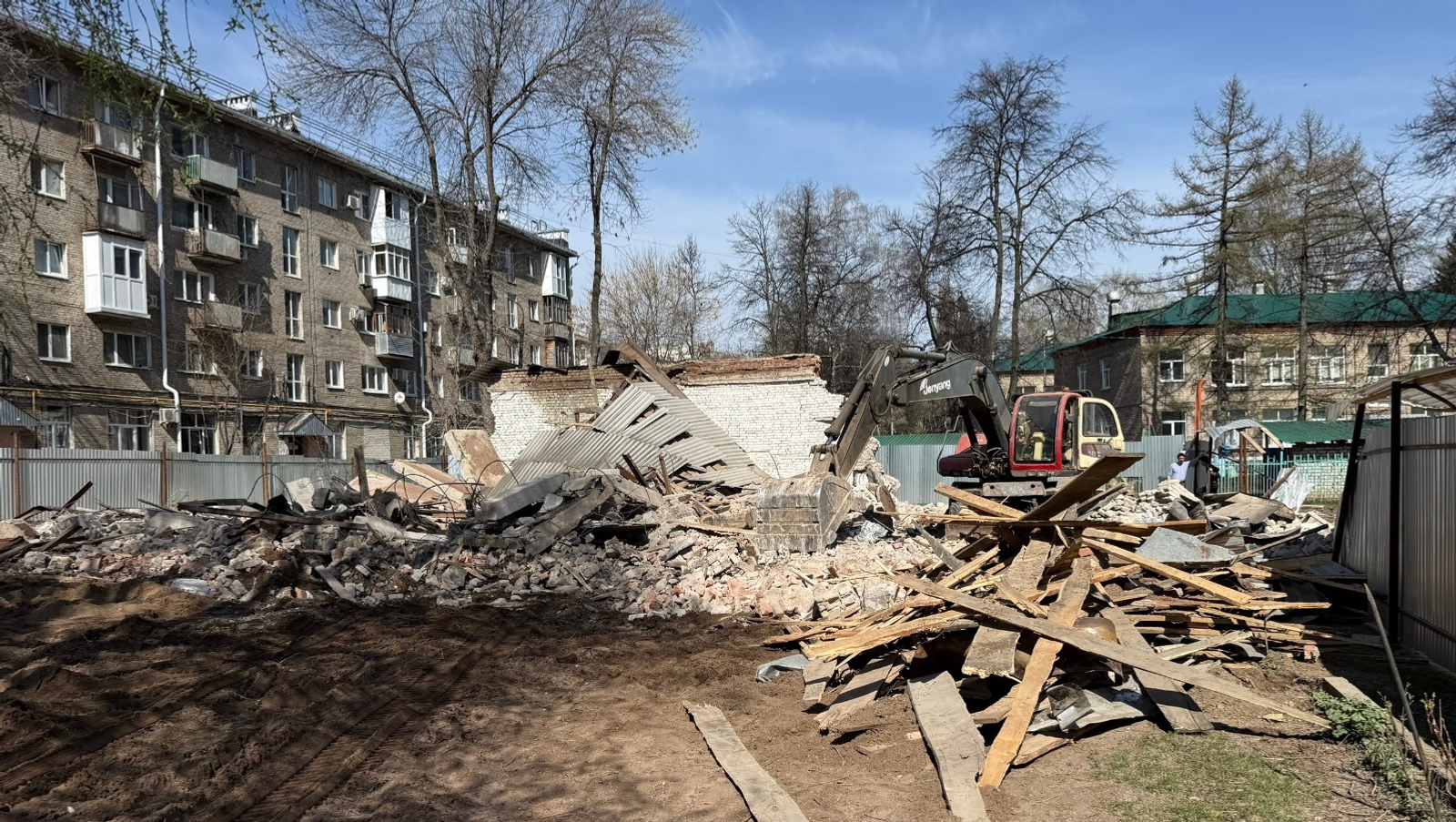 Рабочие уронили кирпичную стену на детскую площадку во время сноса здания в Уфе.